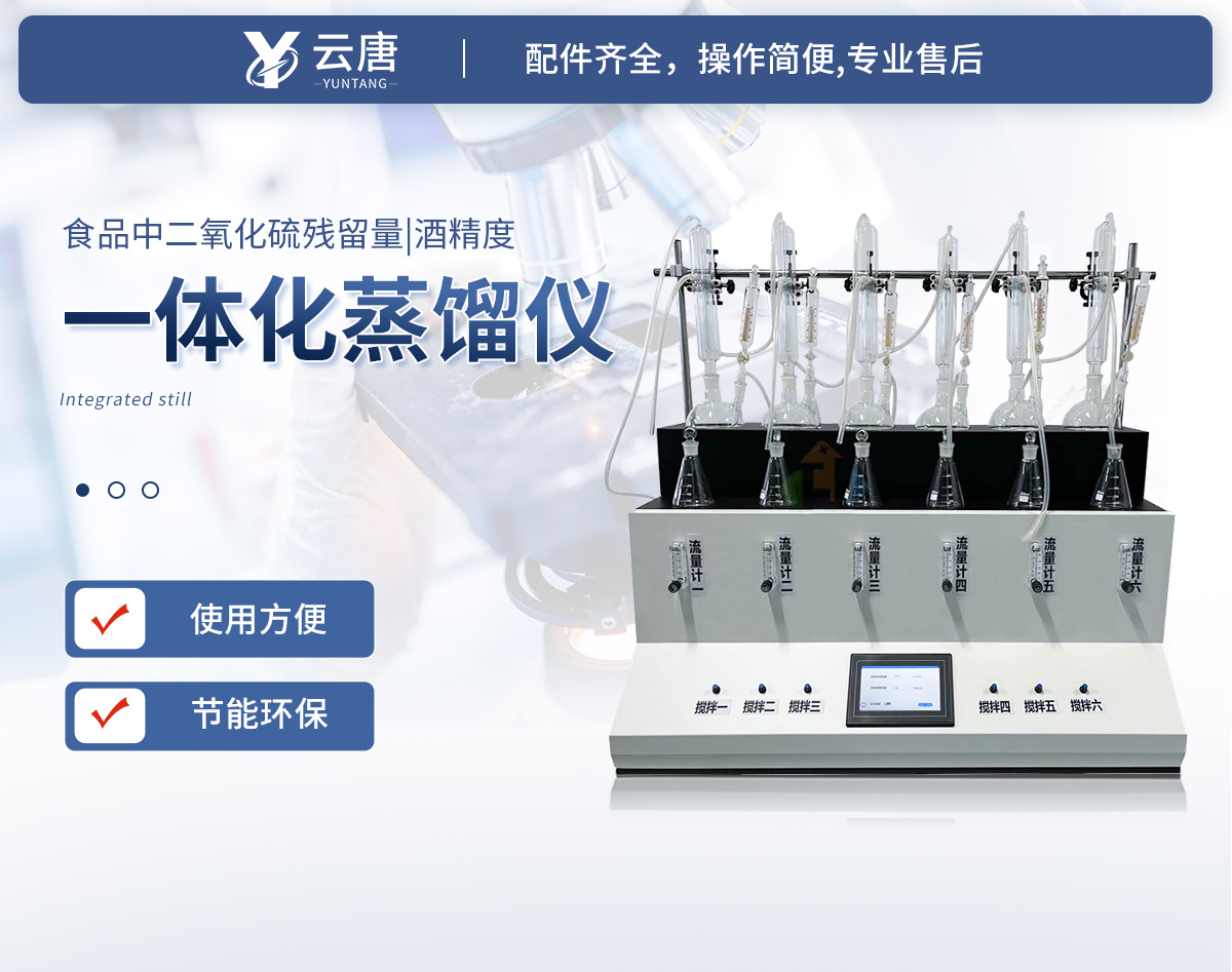 中药二氧化硫残留量测定仪主要由加热模块,蒸馏模块,氮吹模块组成。加热模块设置了高,中,低三档加热速率控制功能,可实现加热效率的**控制面板;蒸馏模块选用高硼硅材料,耐热性好,坚固耐用;。氮吹模块可外接氮气发生器或氮气钢瓶,并配有高精度气体流量计,严格控制氮吹速率