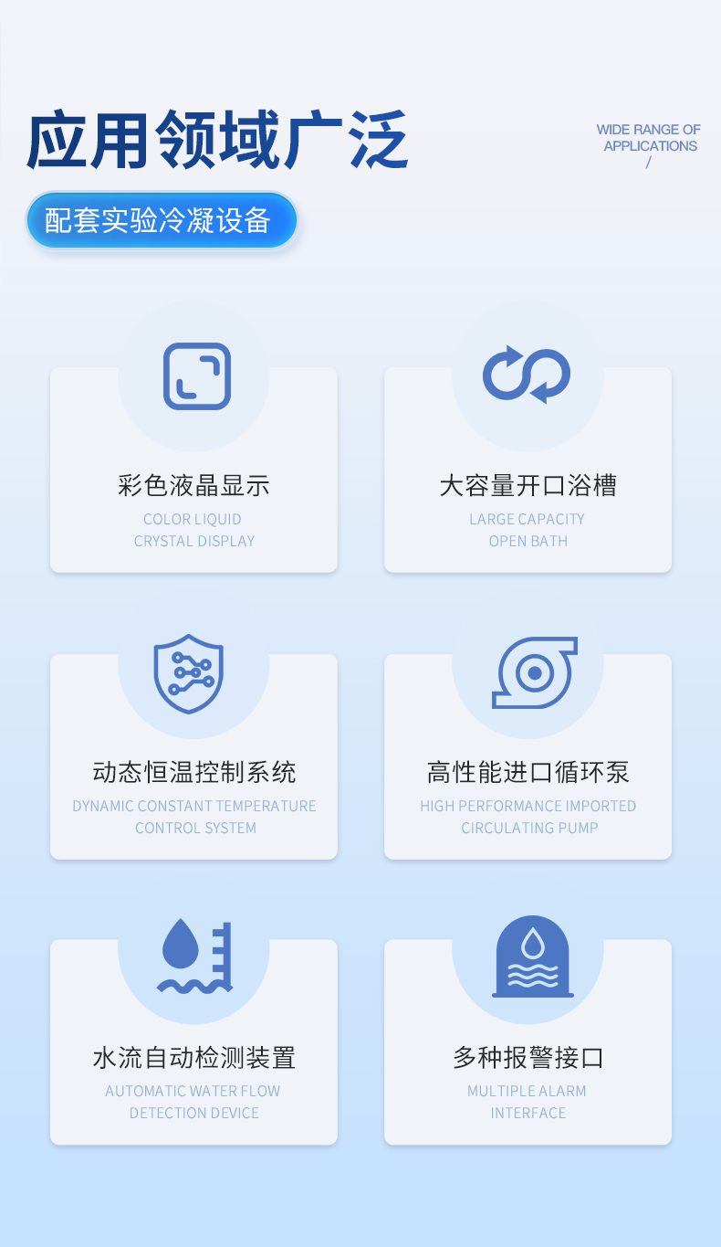 | 1.制冷量达3000w; | 2.体积紧凑,长寿耐用,操作便捷; | 3.温控精度可达士0.3℃; | 4.激光冷水机智能温控器具有两种温控模式,适用于不同的使用场合;有多种设定和故障显示功能; | 5.具有多种报警保护功能:压缩机延时保护、压缩机过流保护、水流保护、温度超限报警; | 6.可选配10-48m各种扬程水泵,供水量供水压力有保障; | 7.可选配加热器和净化水质配置; | 8.可选多国电源规格,CE\RoHS、REACH认证。 |