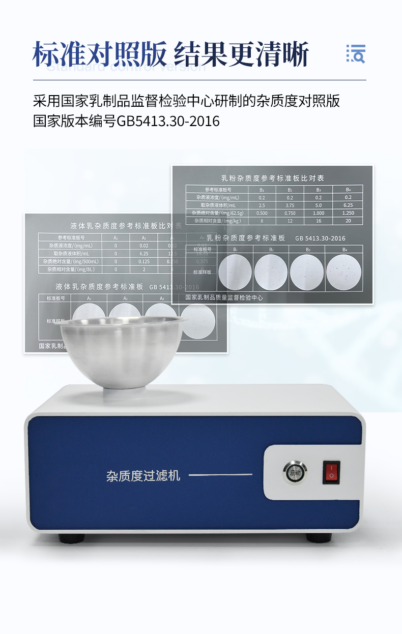 | 用途:用于乳及乳制品中杂质度的测定。 | 标准依据:符合国家标准 GB/T5413.1—5413.32,特别是 GB5413.30-2016 的要求。 |